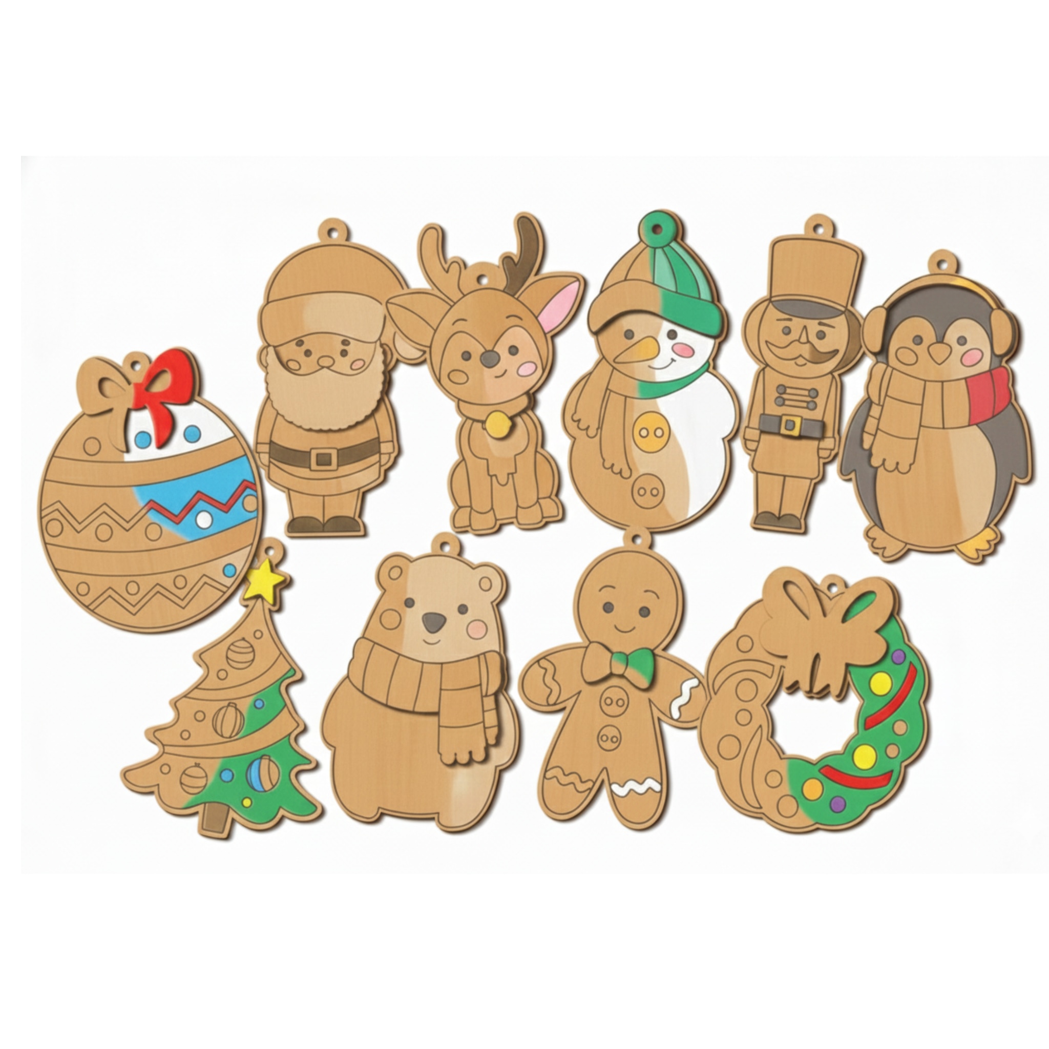 Paintable Christmas Ornaments Bundle – Set of 10 Laser Cut Wooden DIY Hanging Decorations