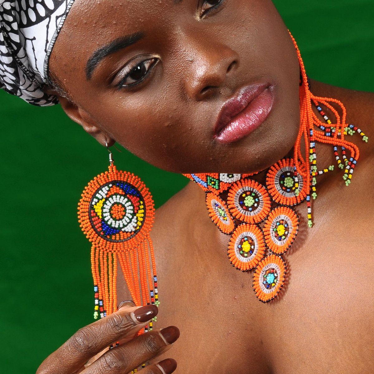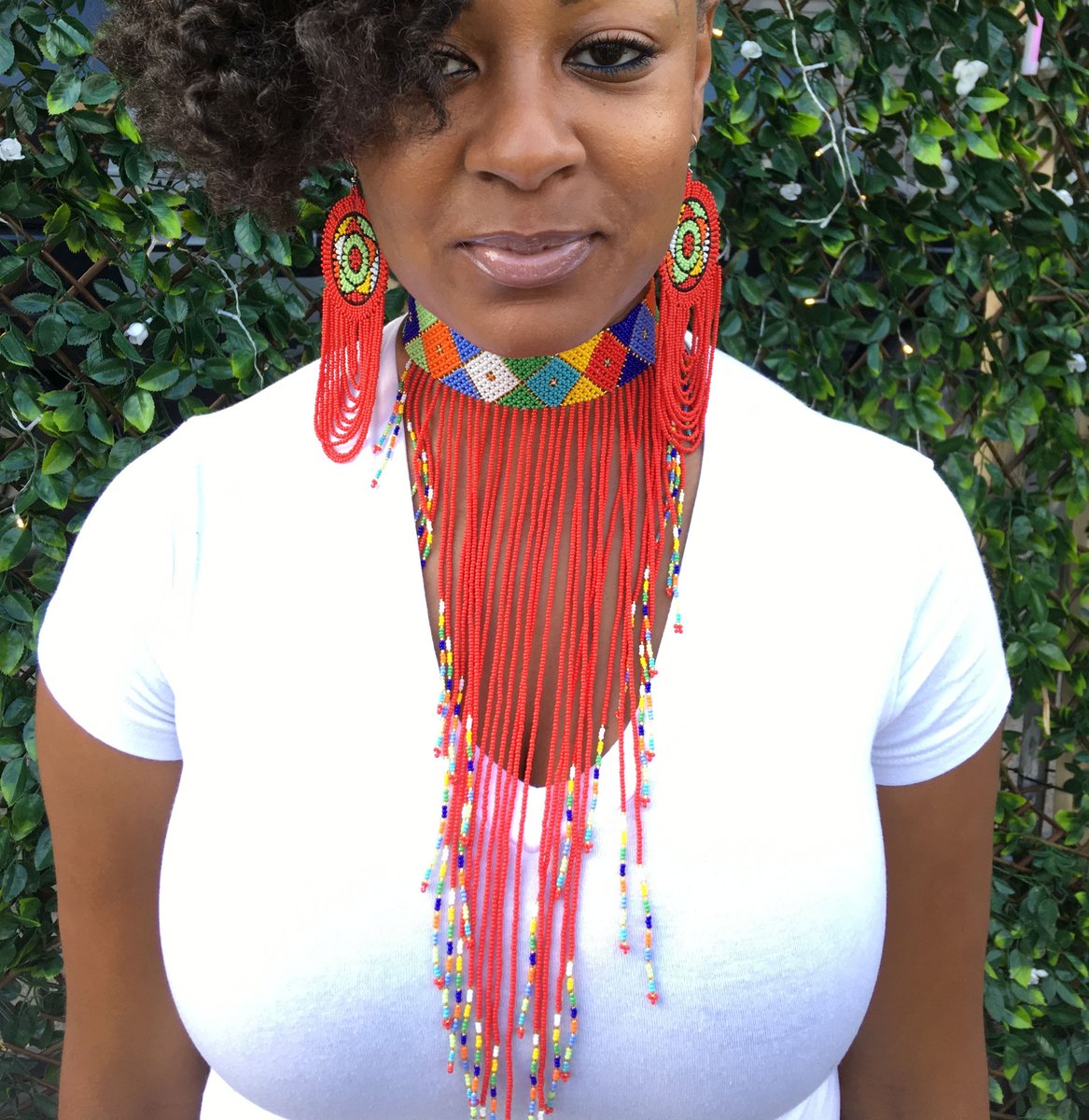 Nubian Queen Fringed Beaded Choker