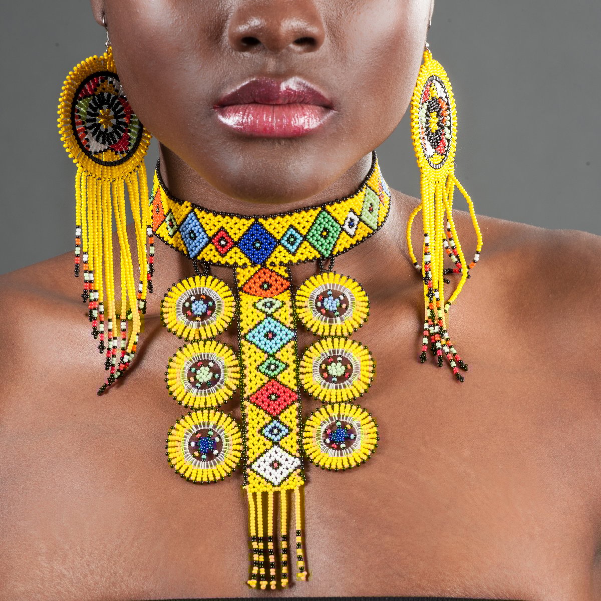 Zulu Beaded Circle Choker & Tasseled Earrings