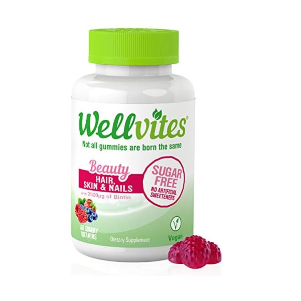 Wellvites Beauty Gummies, Sugar Free Biotin Gummies for Hair, Skin and Nails with Biotin, Vitamin B12, and Folate – Vegan, Non-GMO and Gluten-Free, 60 Count