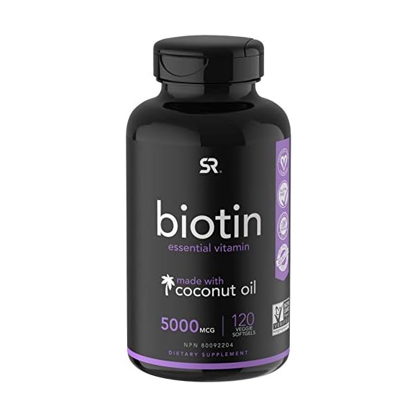 Sports Research® Biotin 5,000mcg with Organic Coconut Oil – Biotin (Vitamin B7) for Healthy Skin and Hair Support* – for Women and Men – Vegan, Non-GMO, Gluten & Soy-Free – 120 Veggie Softgels
