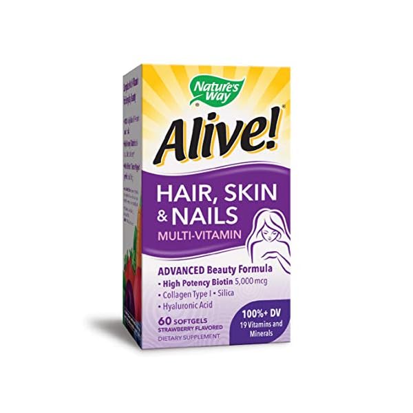 Nature’s Way Alive! Hair, Skin & Nails Multivitamin with Biotin and Collagen, 60 Softgels