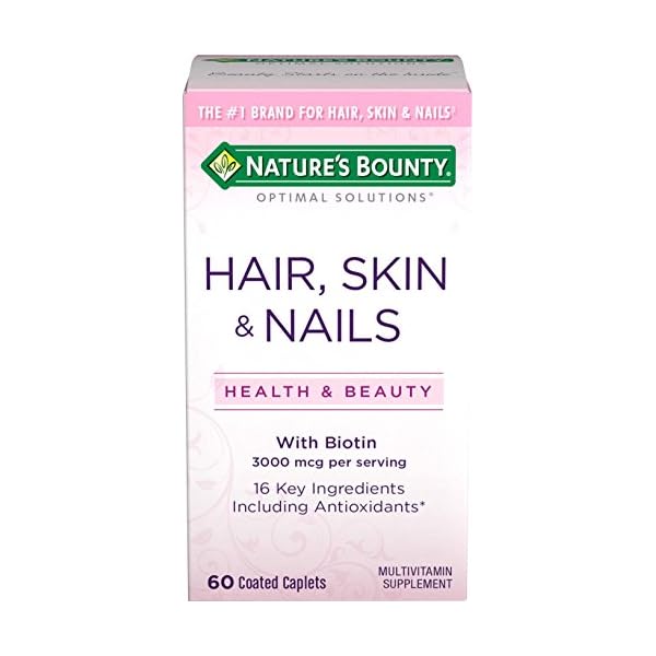 Nature’s Bounty Optimal Solutions Hair, Skin & Nails Formula, with 3,000 mcg Biotin, 60 Coated Caplets, 20 Total Servings