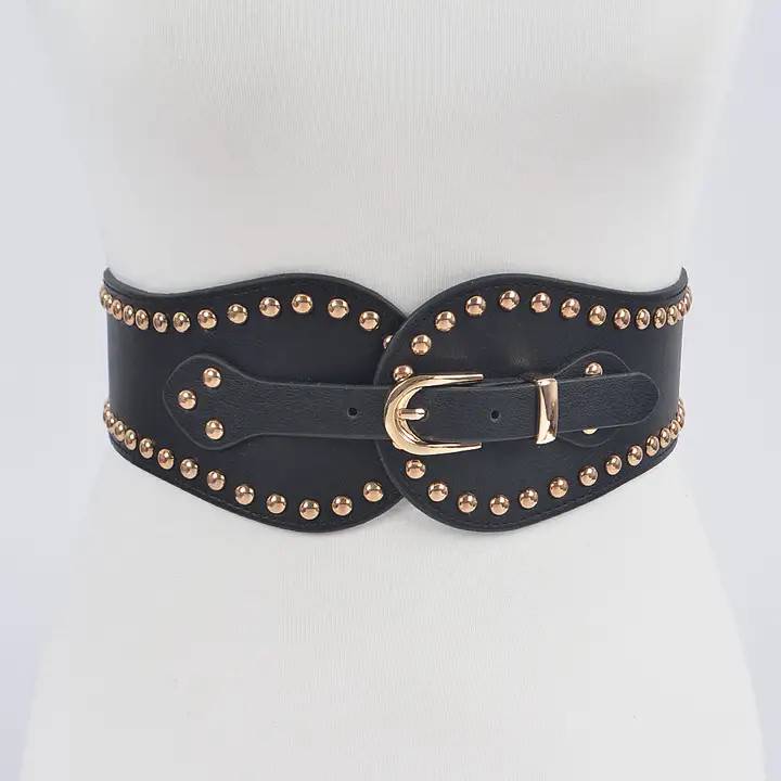 3AM: Black & Gold Studded Rounded Elastic Waist Belt