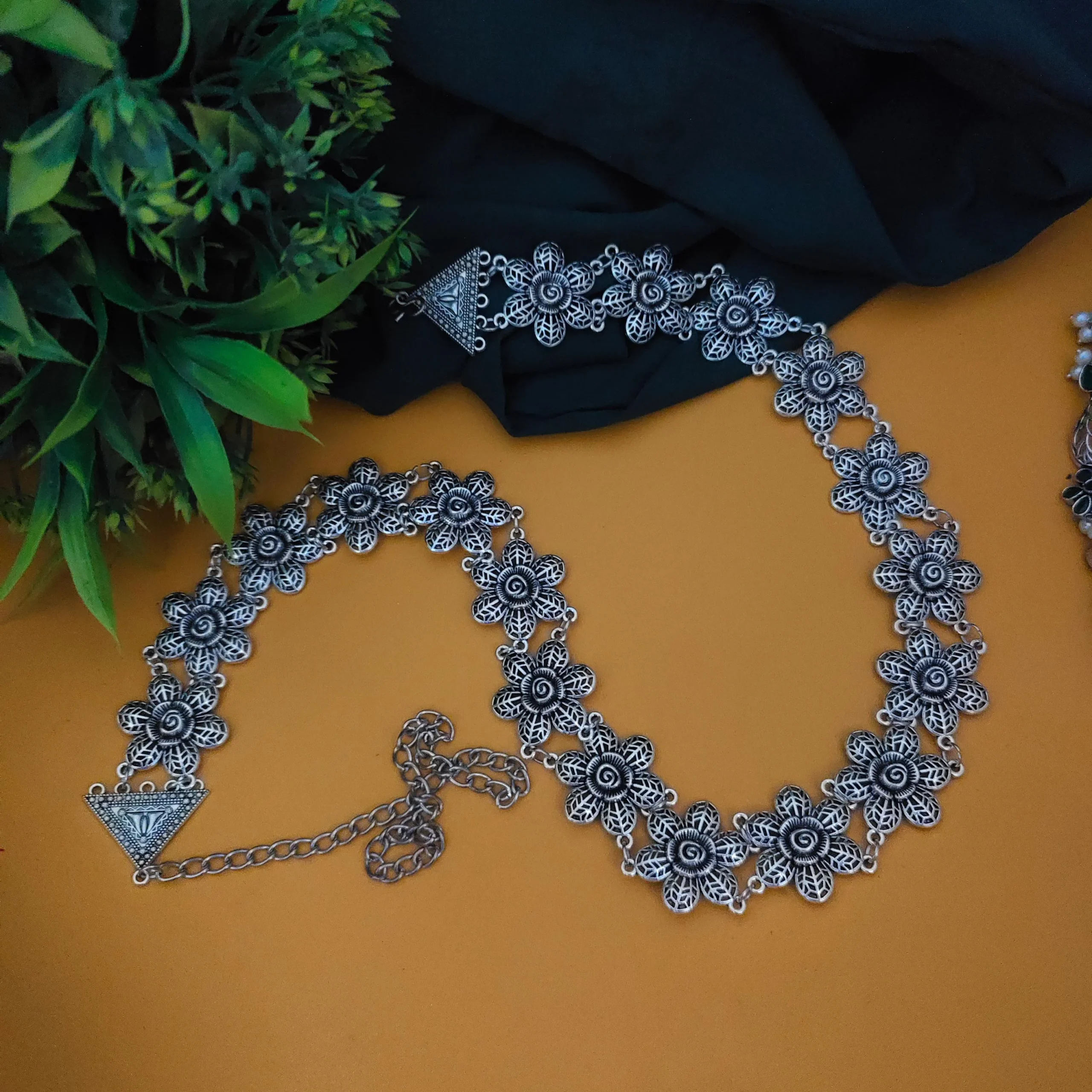Ethnic Oxidised Brooch & Waist Belt Set – Indian Traditional Design