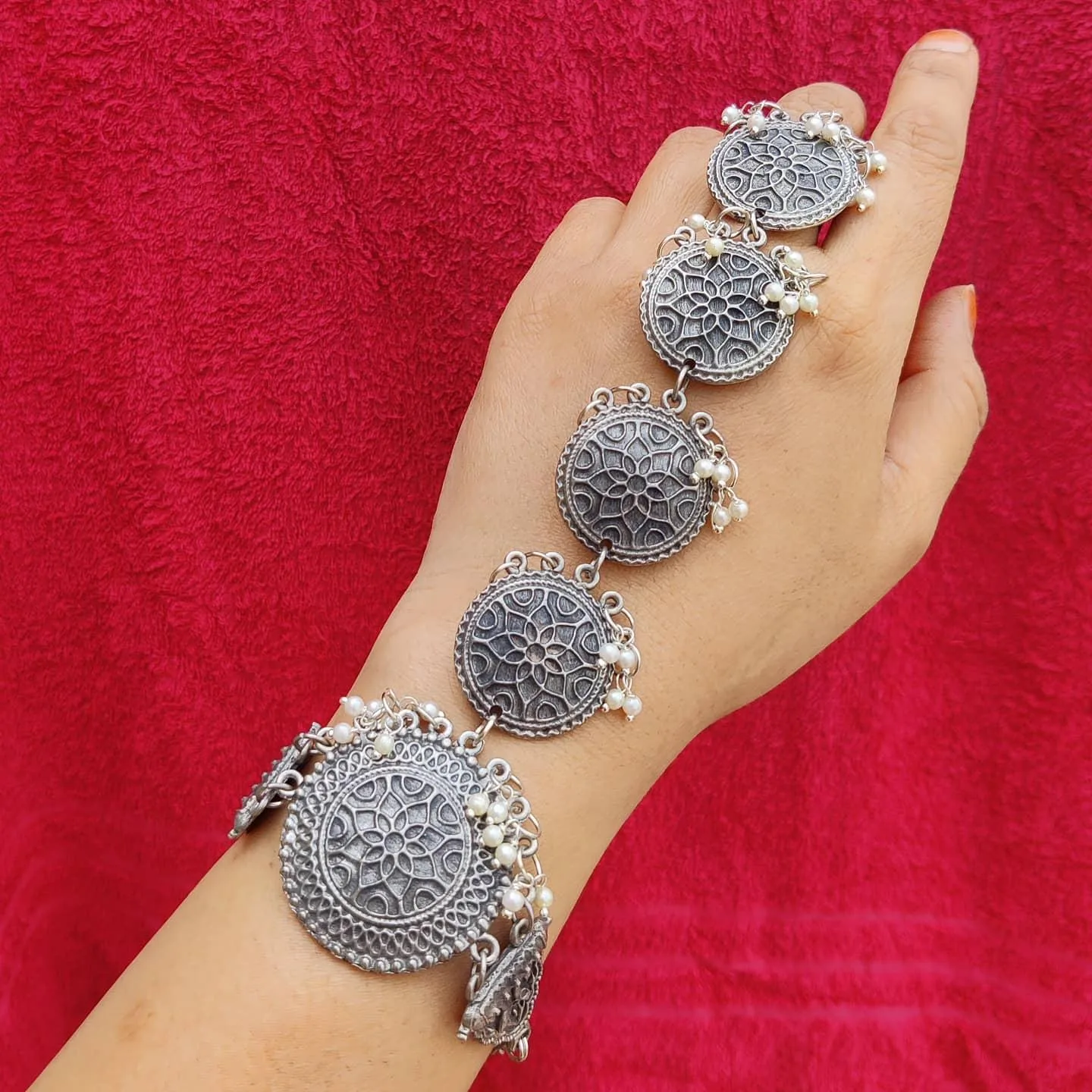 Stylish Oxidised Handcuff Hathful Bracelet: Trendy Armlet For Women