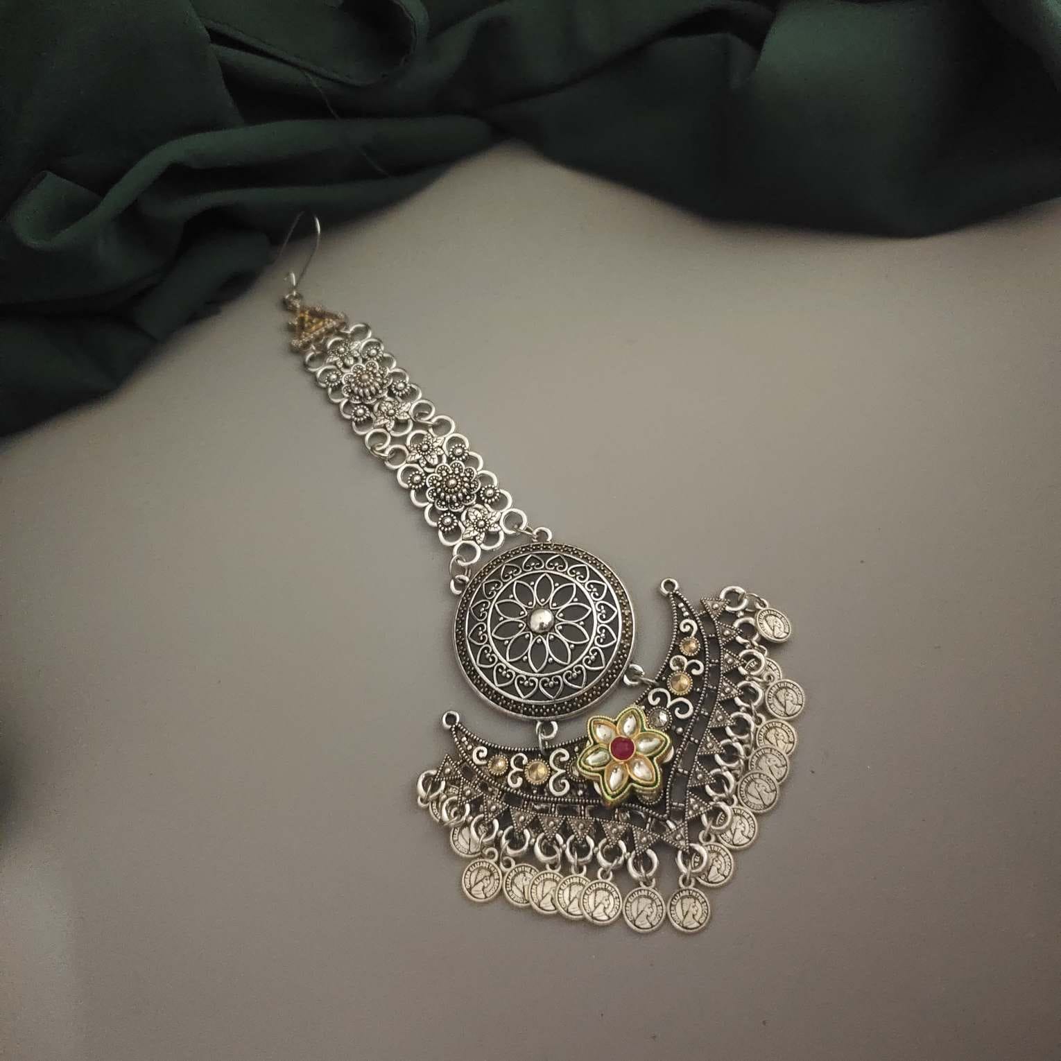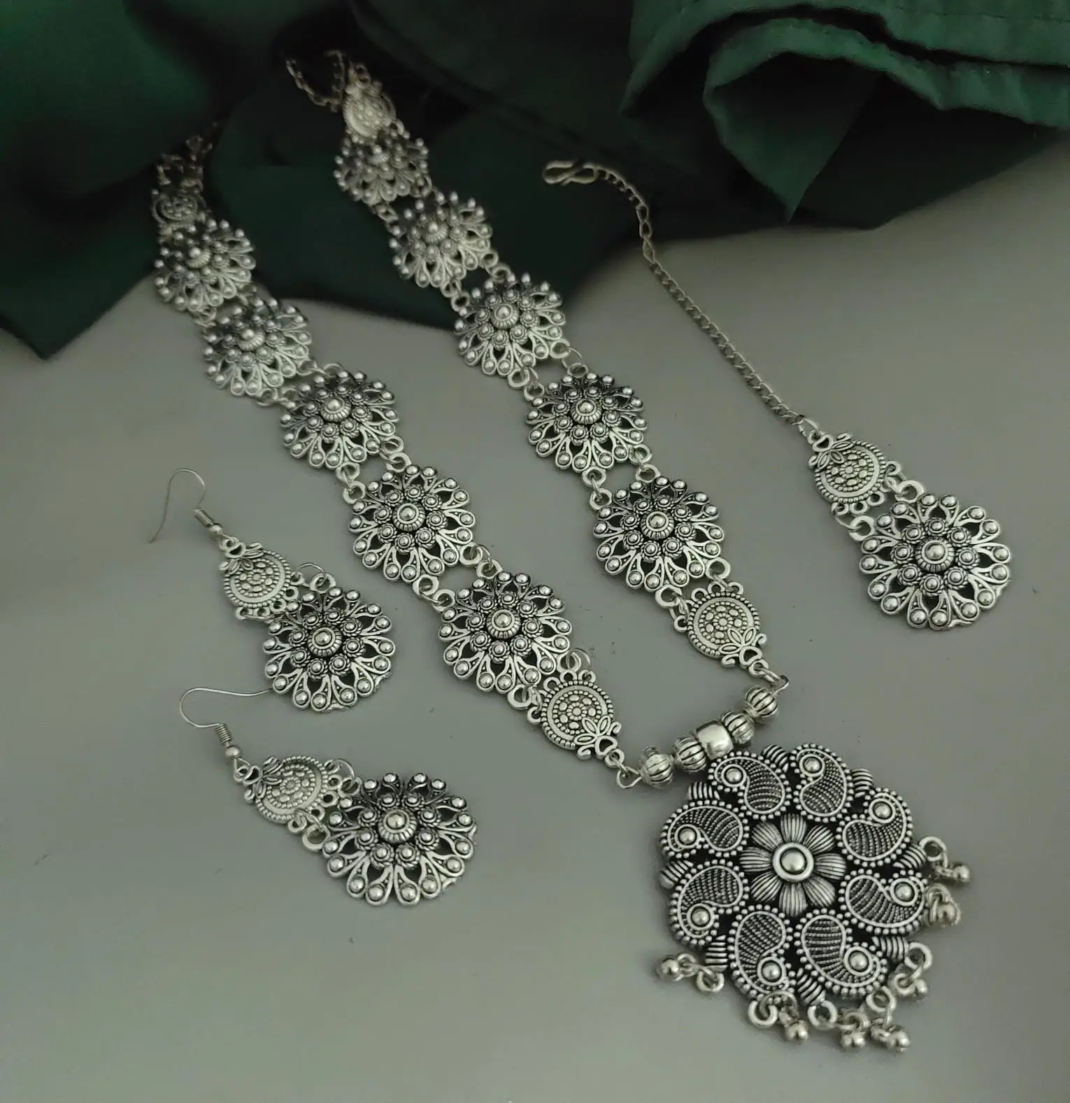 Ethnic Oxidised Necklace Earrings Mangtika Set