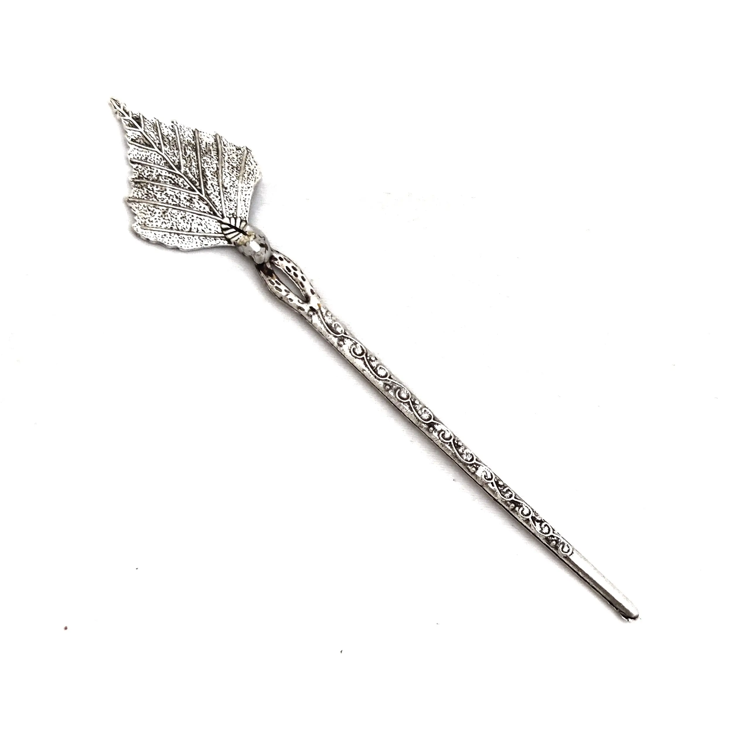 Chic Leaf Design German Silver Hair Stick – Elegant Trendy Bun Accessory