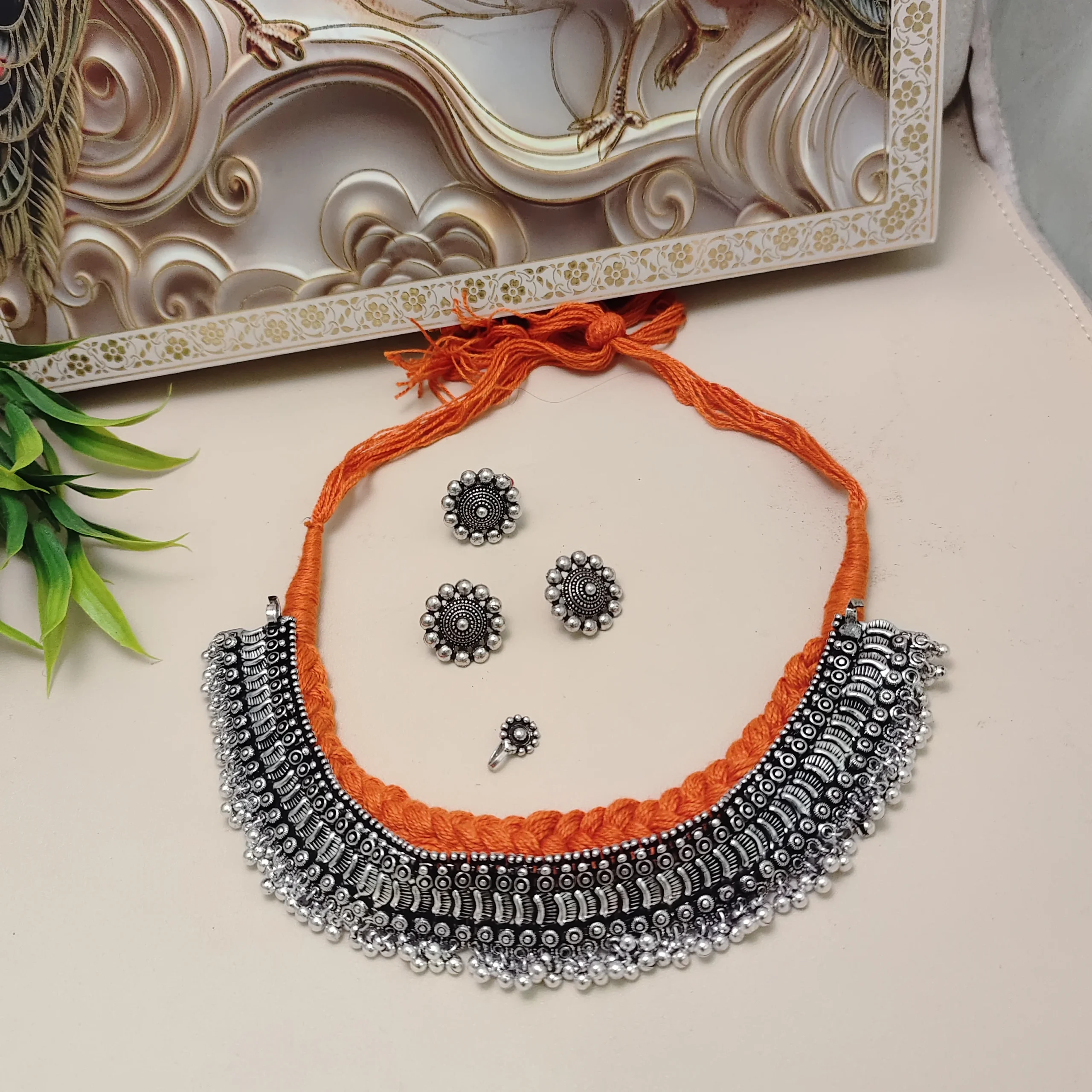 Kayra Thread Oxidized Jewellery Combo Set Orange