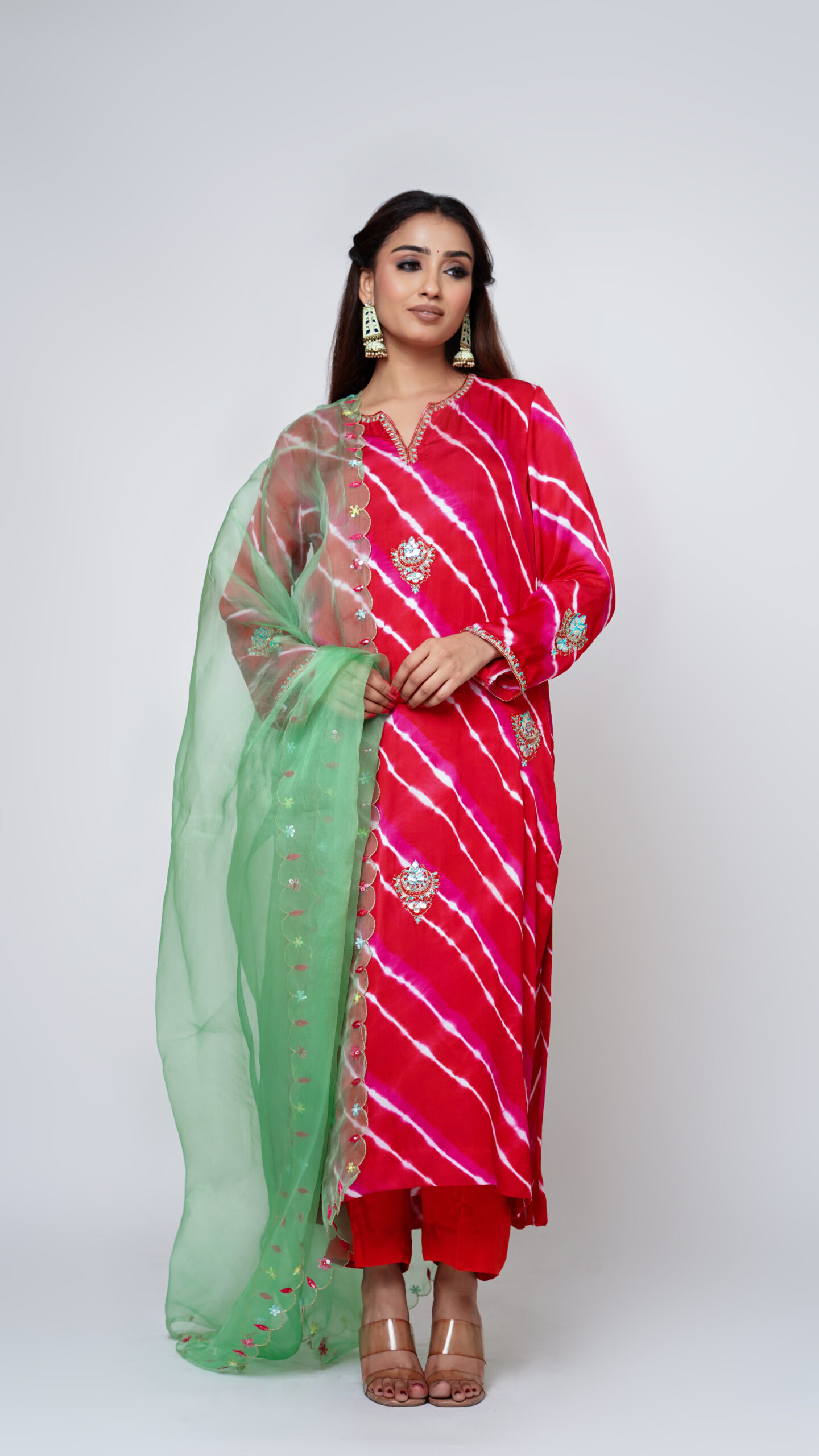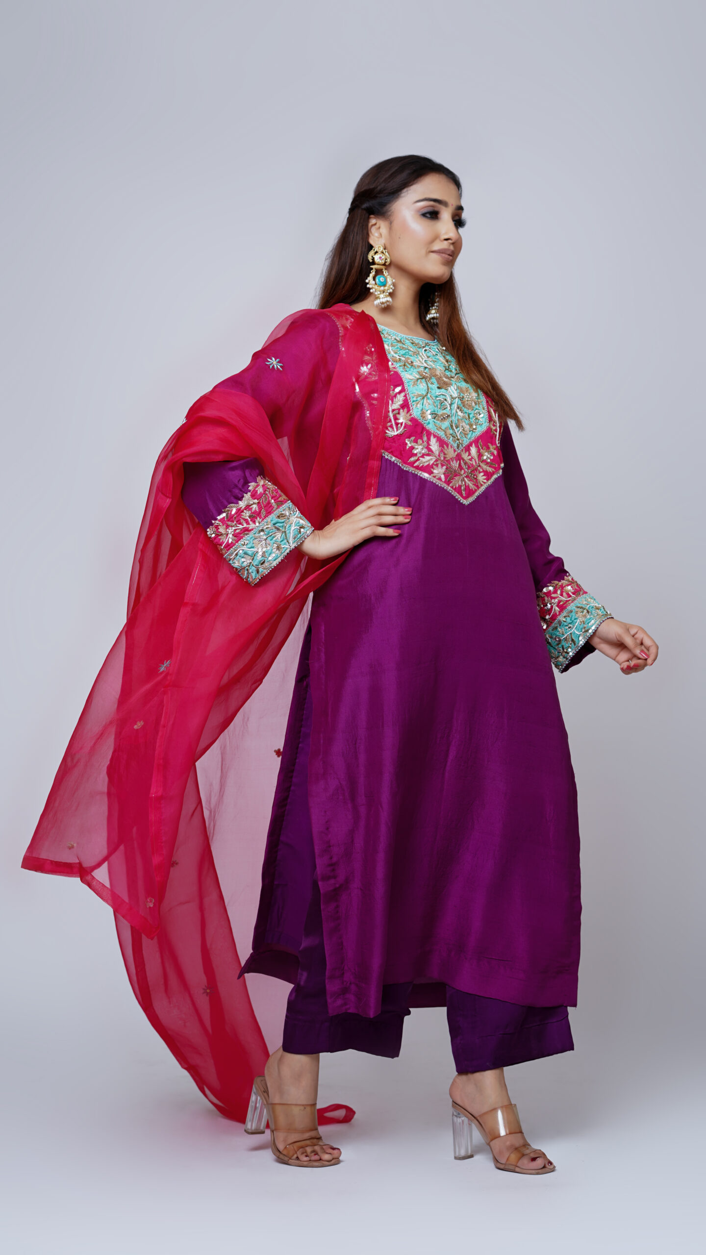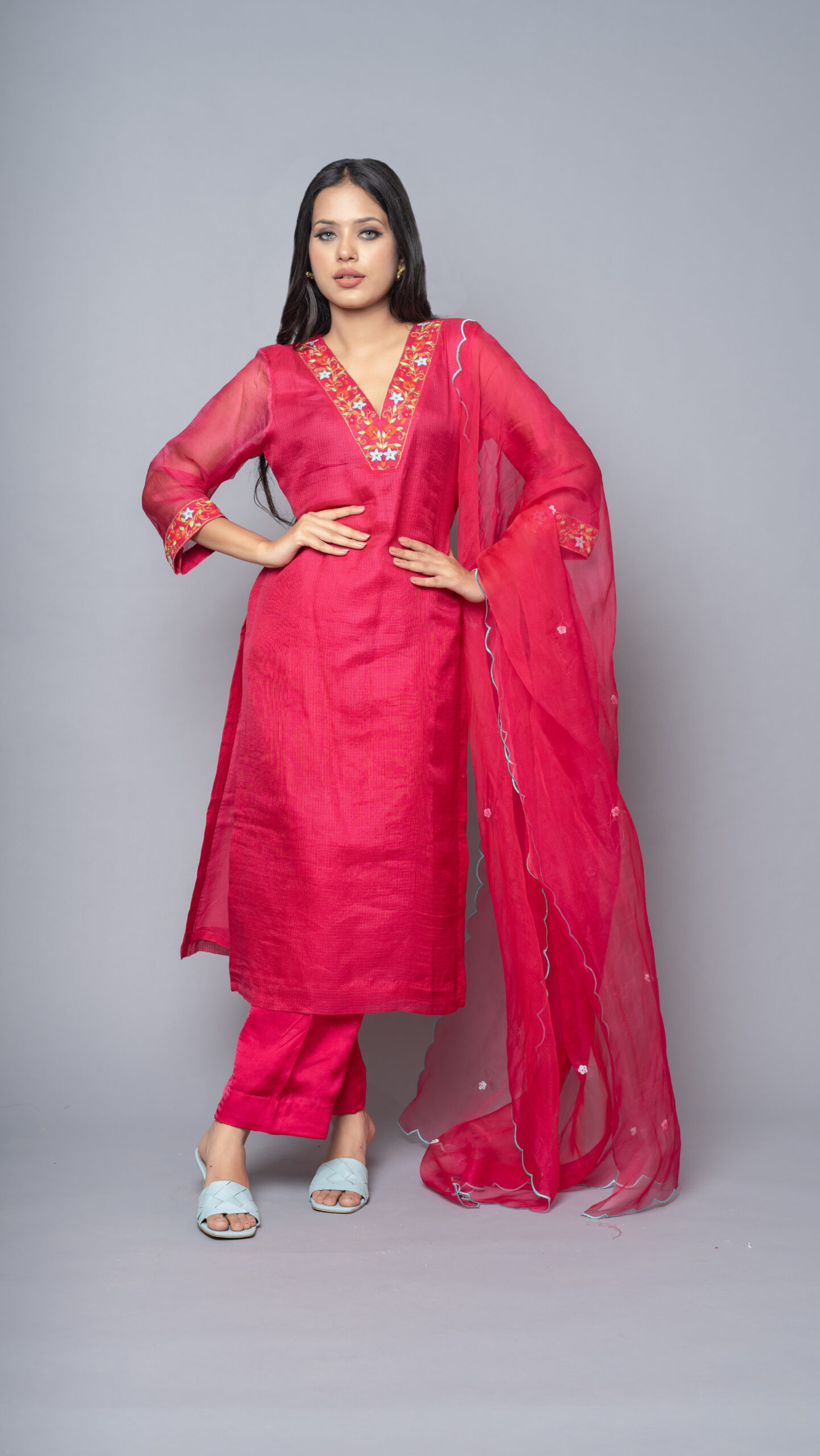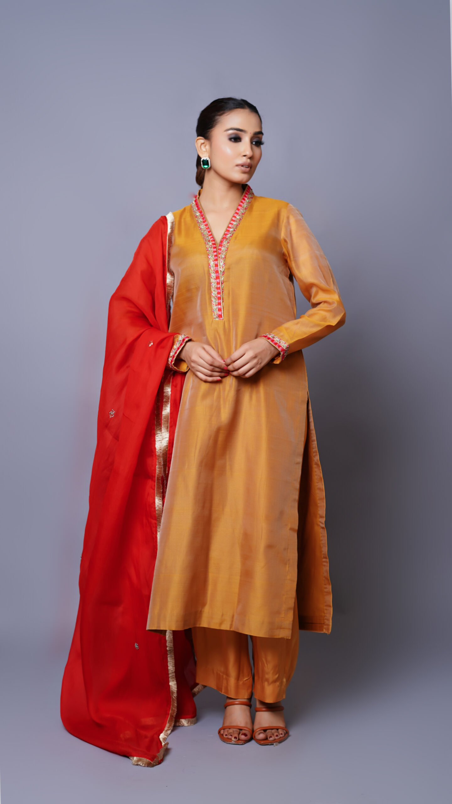 Neon Chanderi Silk Kurta Set with organza dupatta