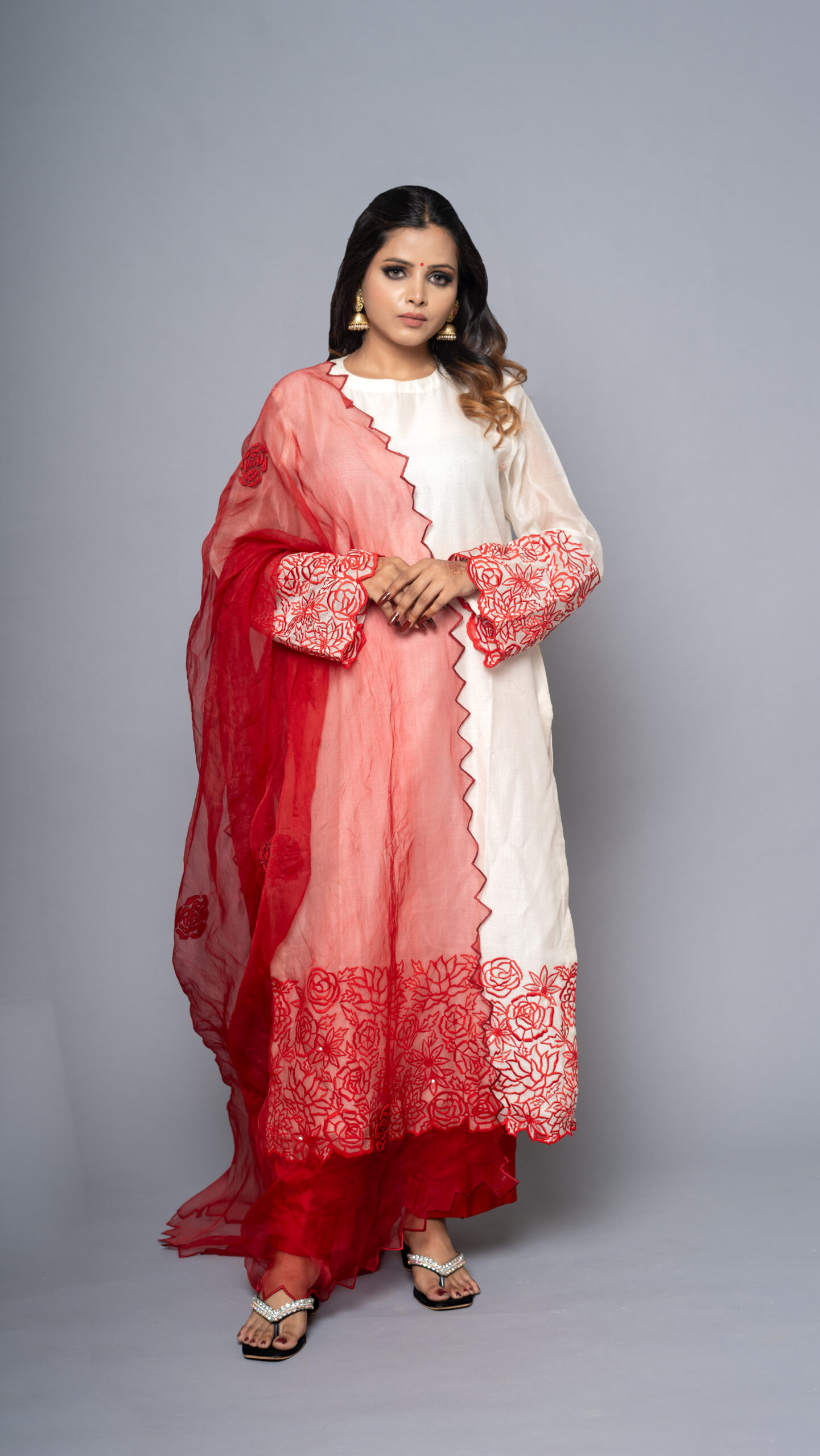 Ivory White Chanderi Silk Suit Set