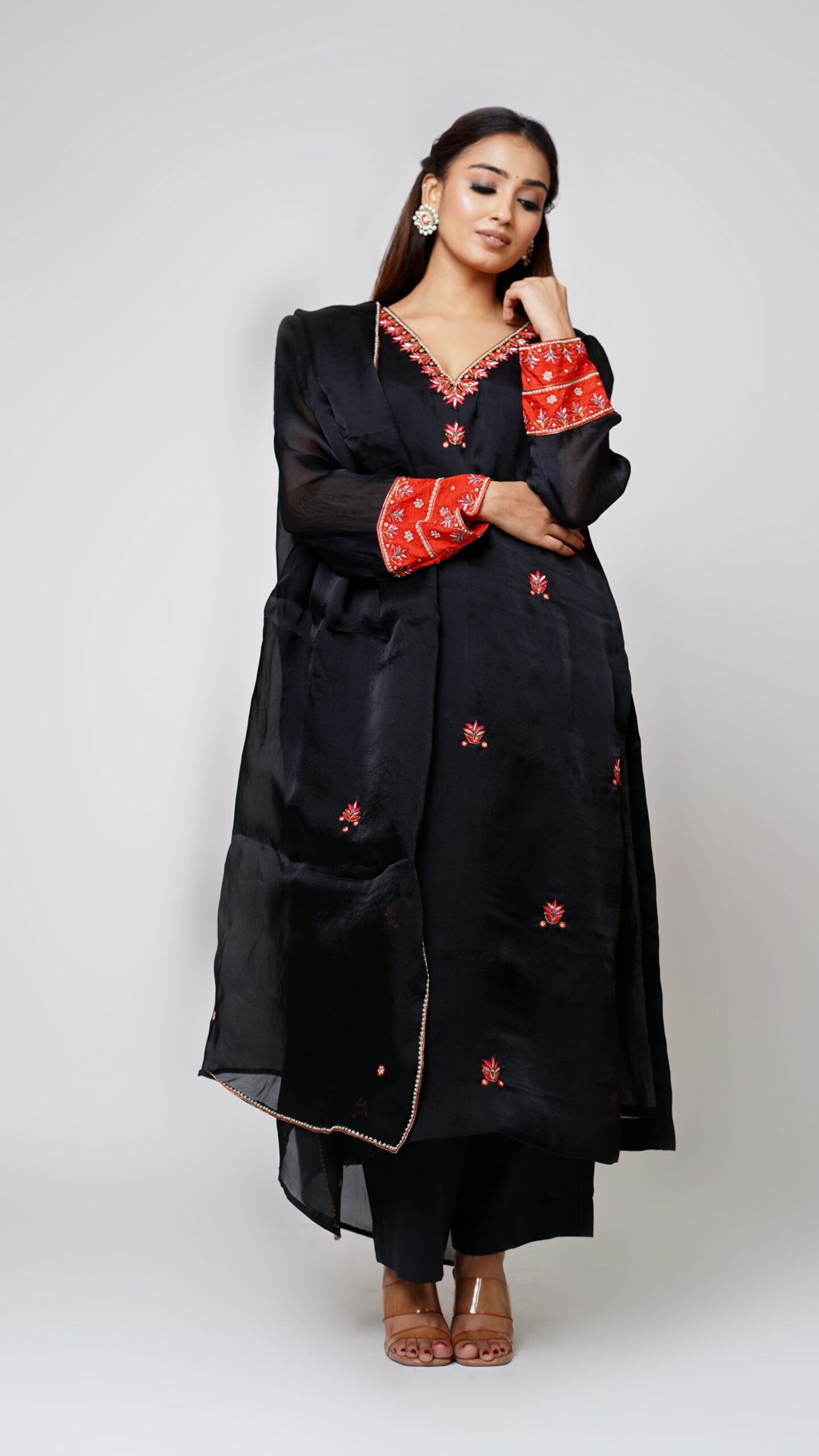 Black Pure Organza Silk Suit Set