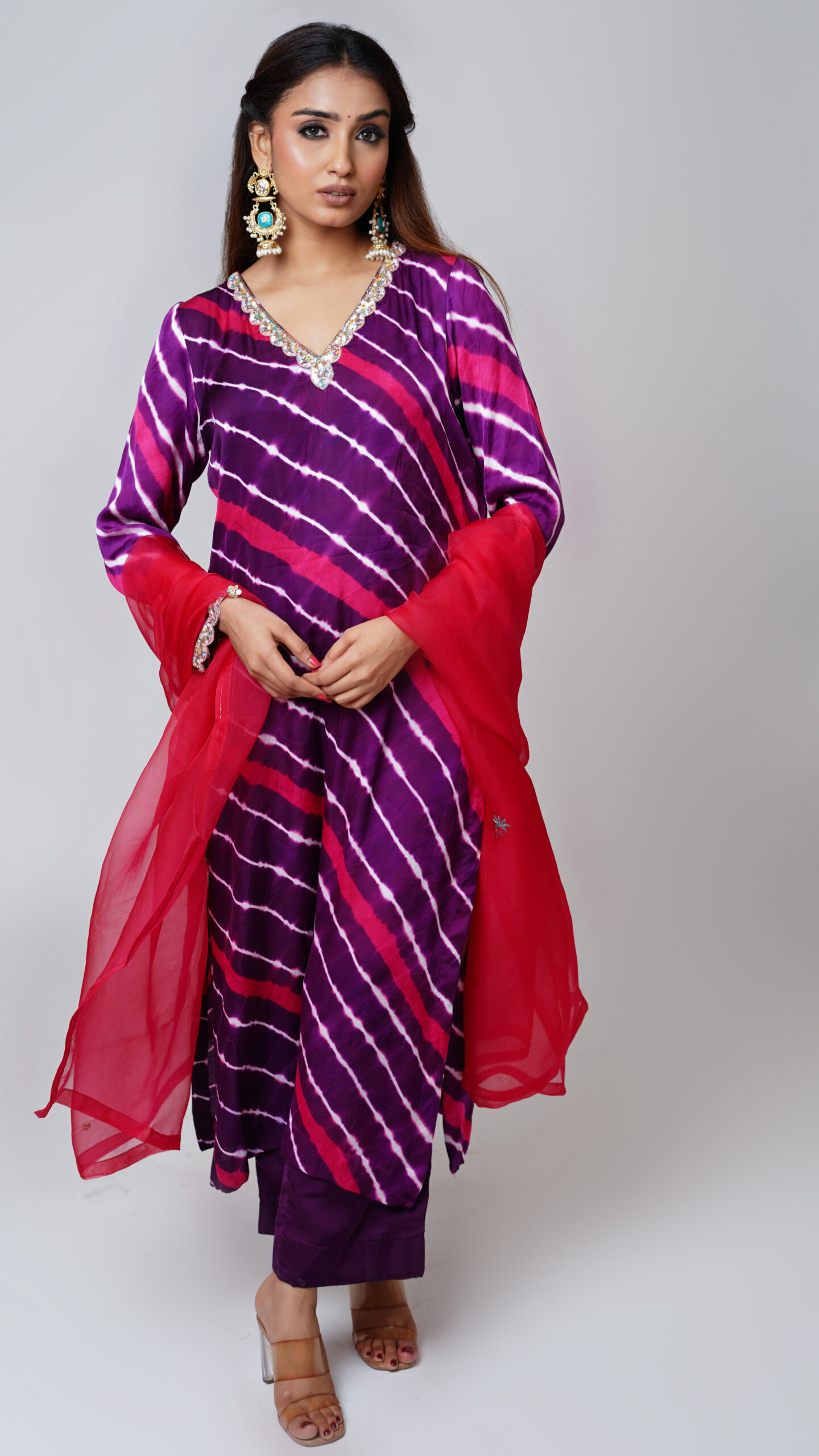 Modal Silk Leheriya Kurta Set