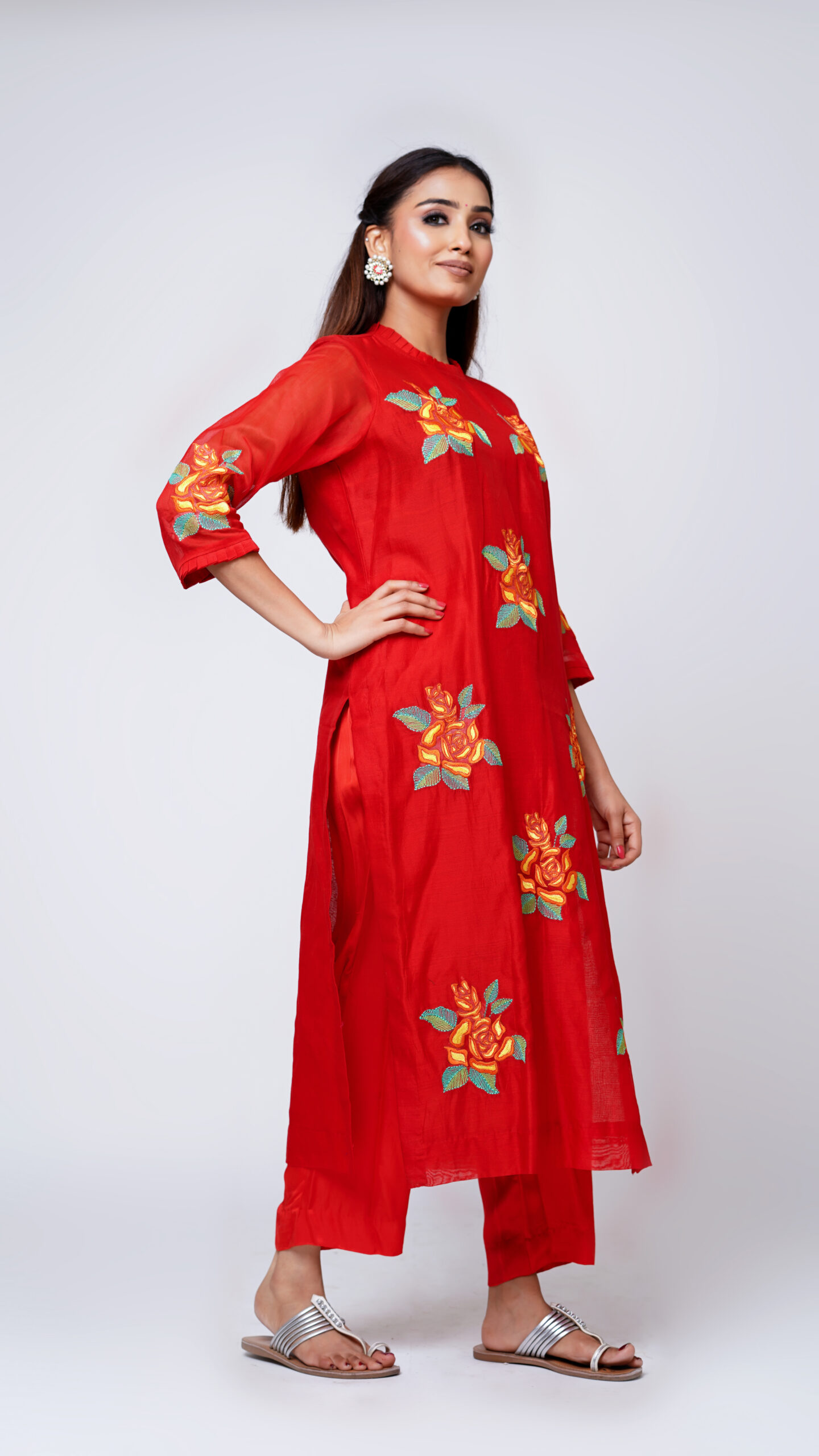 Red Chanderi Silk Kurta Set