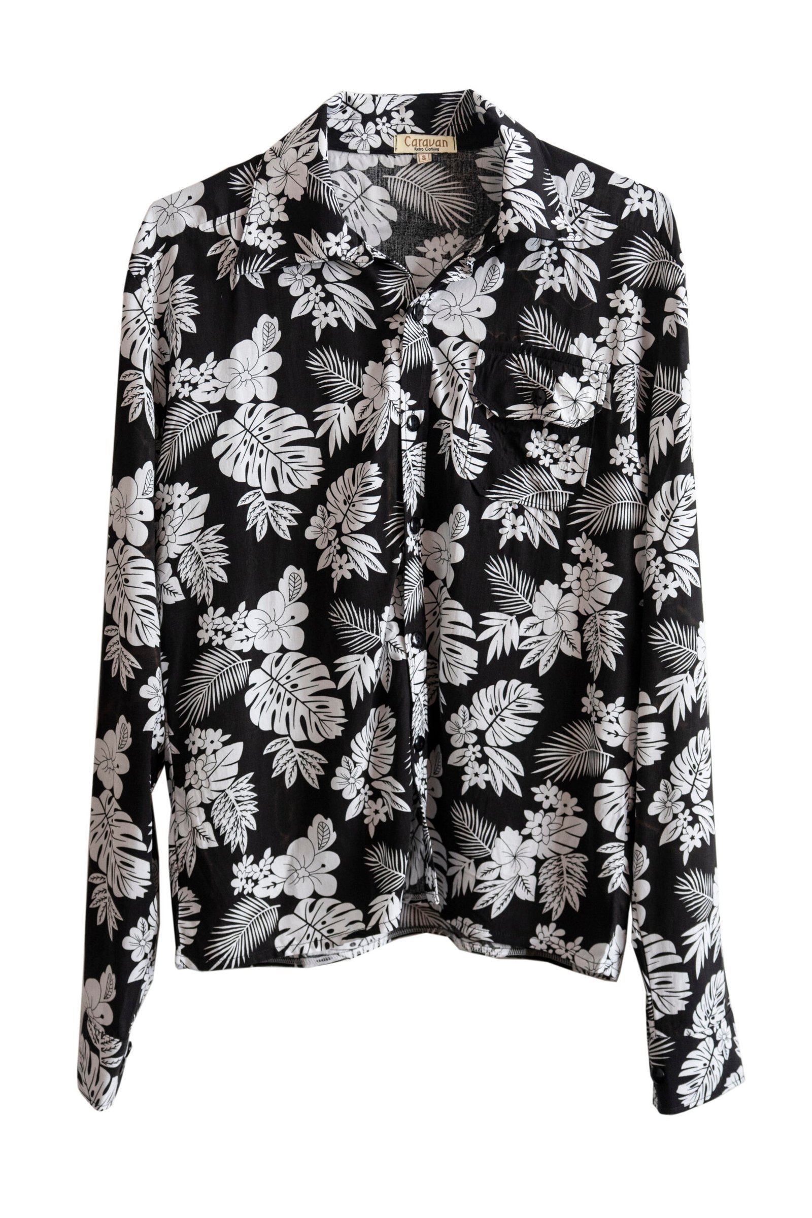 CAMISA MANGA CORTA NEGRA FLOREADA