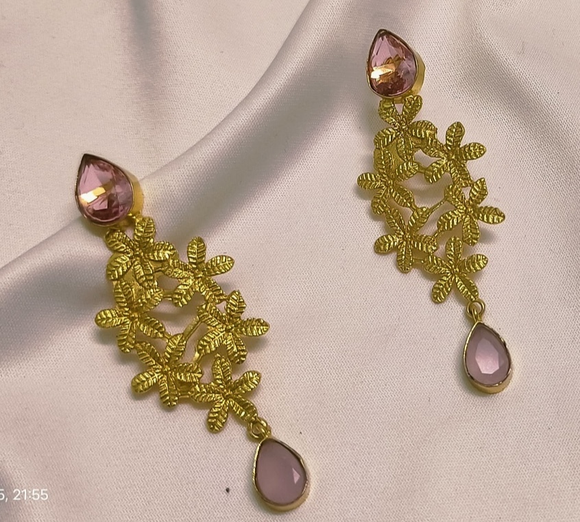 Golden Blossom Drop Earrings with Stone Detailing