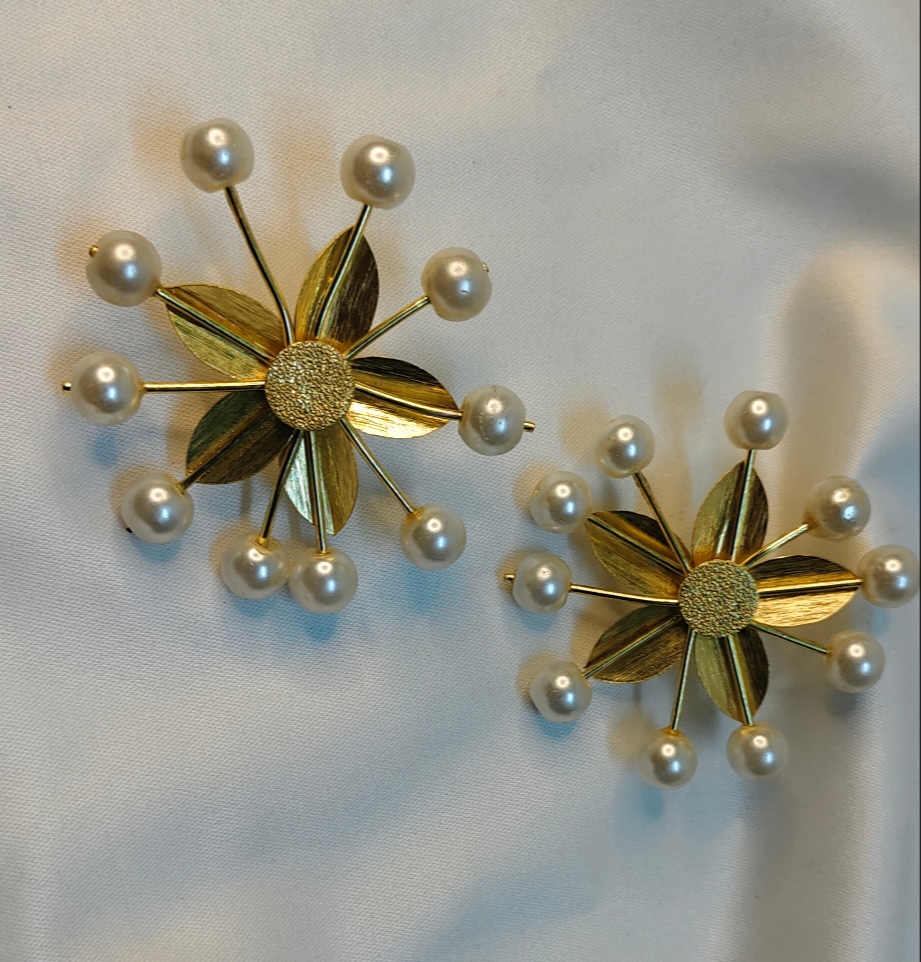 Flower pearl monalisa gold earrings