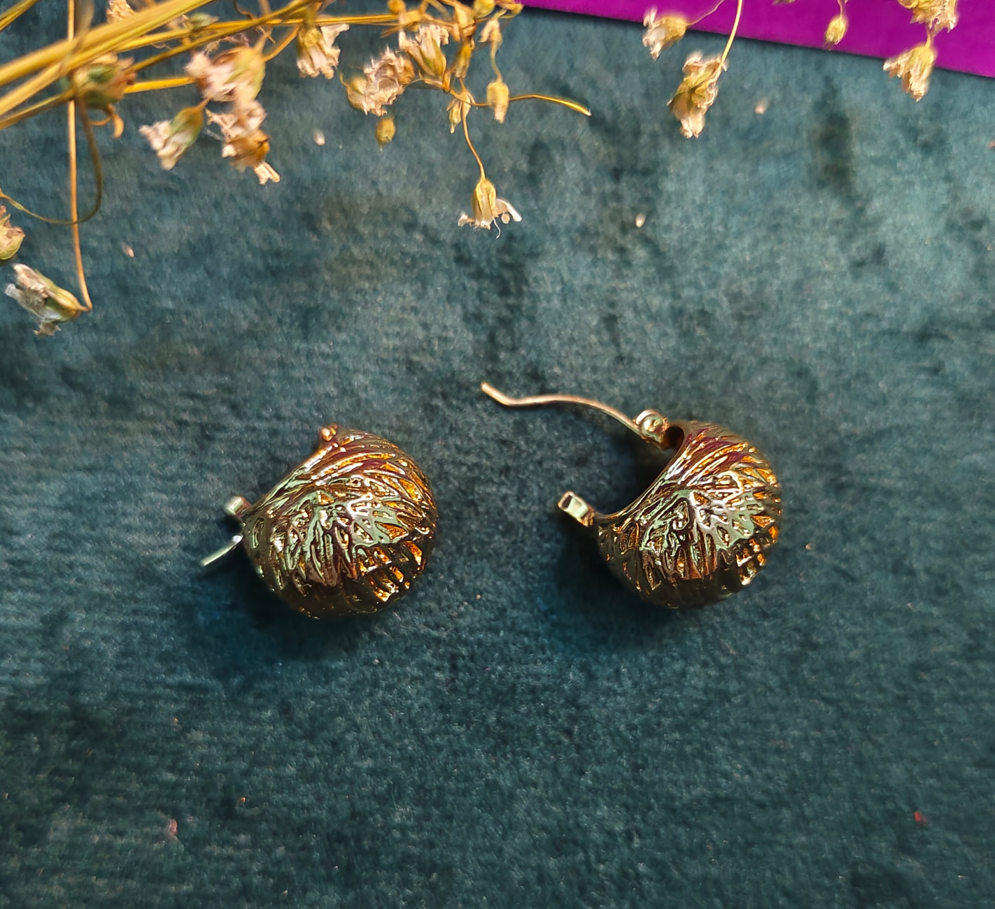 Golden Blossom Hoop Earrings – Floral Patterned Statement