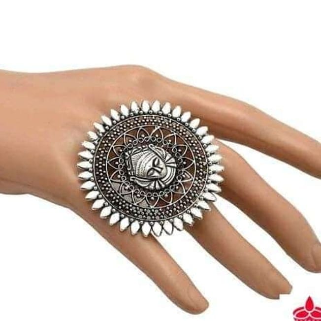 Durga Inspired Oxidised Ethnic Ring – Festive Wear Wonder