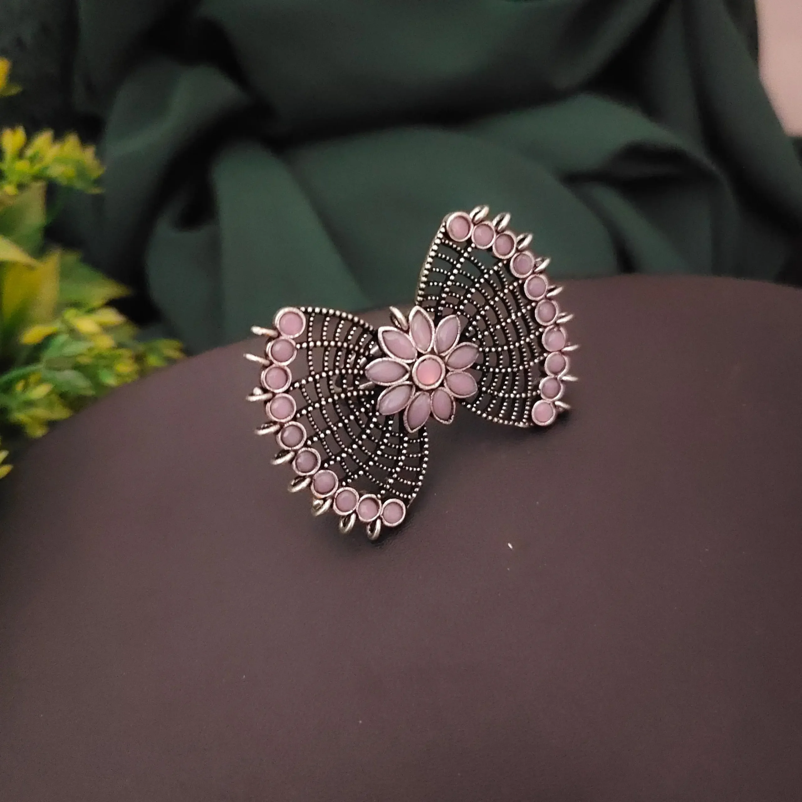 Stylish Pink Stone Bow Rings – Adjustable & Affordable