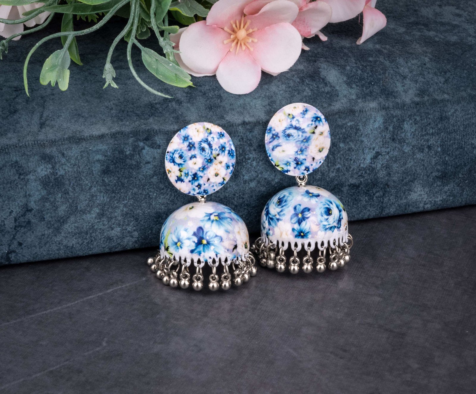 Blue Floral Meenakari Dome Jhumka Earrings