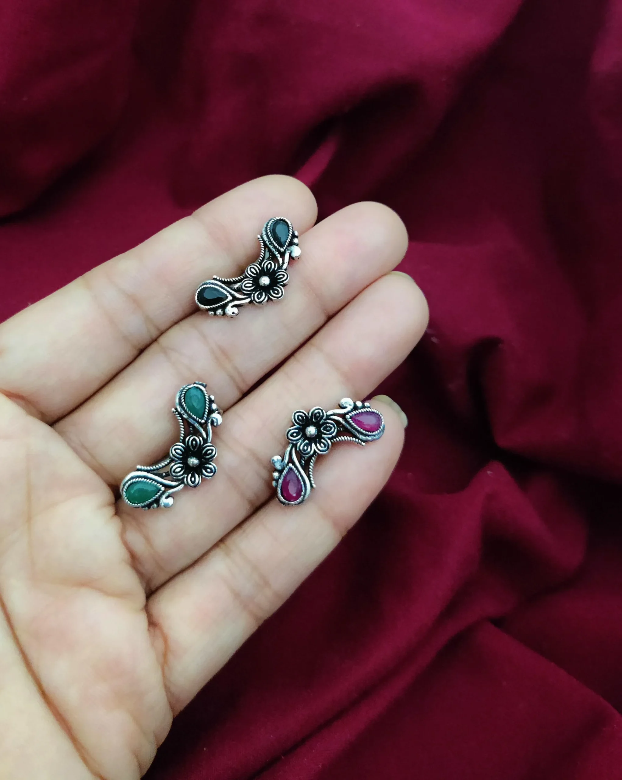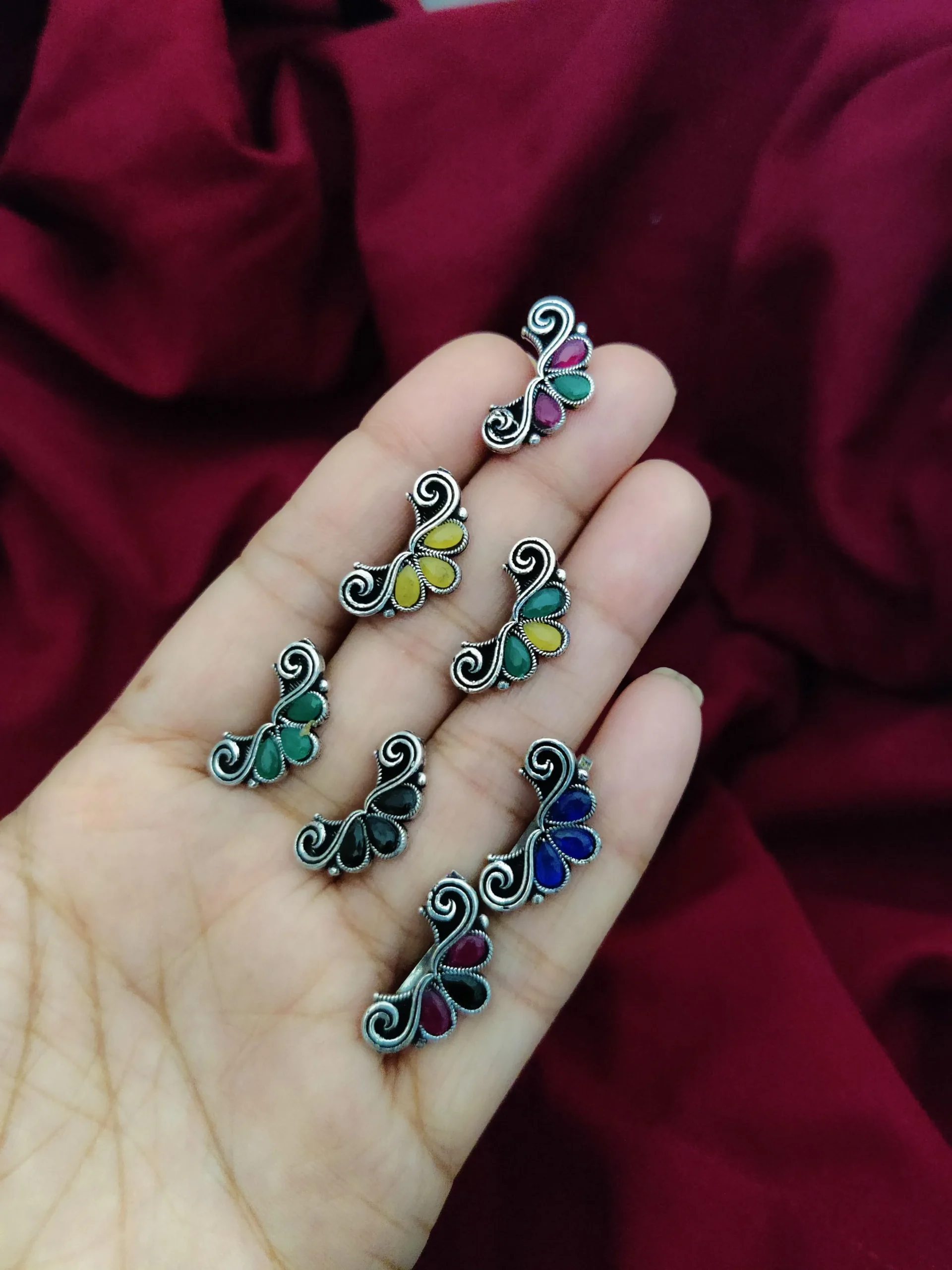 Floral Stone Wired Nose Pin: Premium Quality Oxidised Beauty