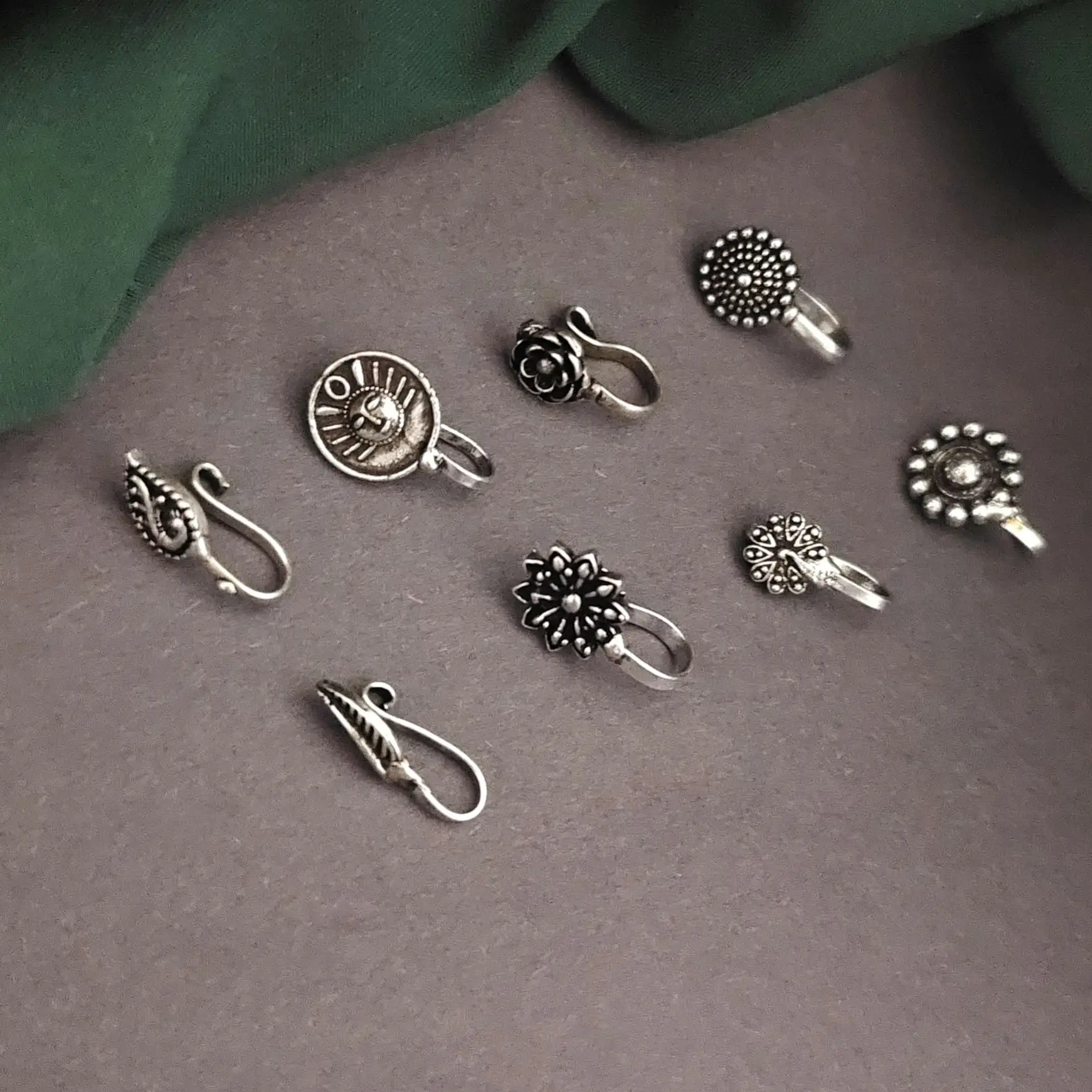 Stylish Oxidised Clip On Nosepin Set: Pack Of 8
