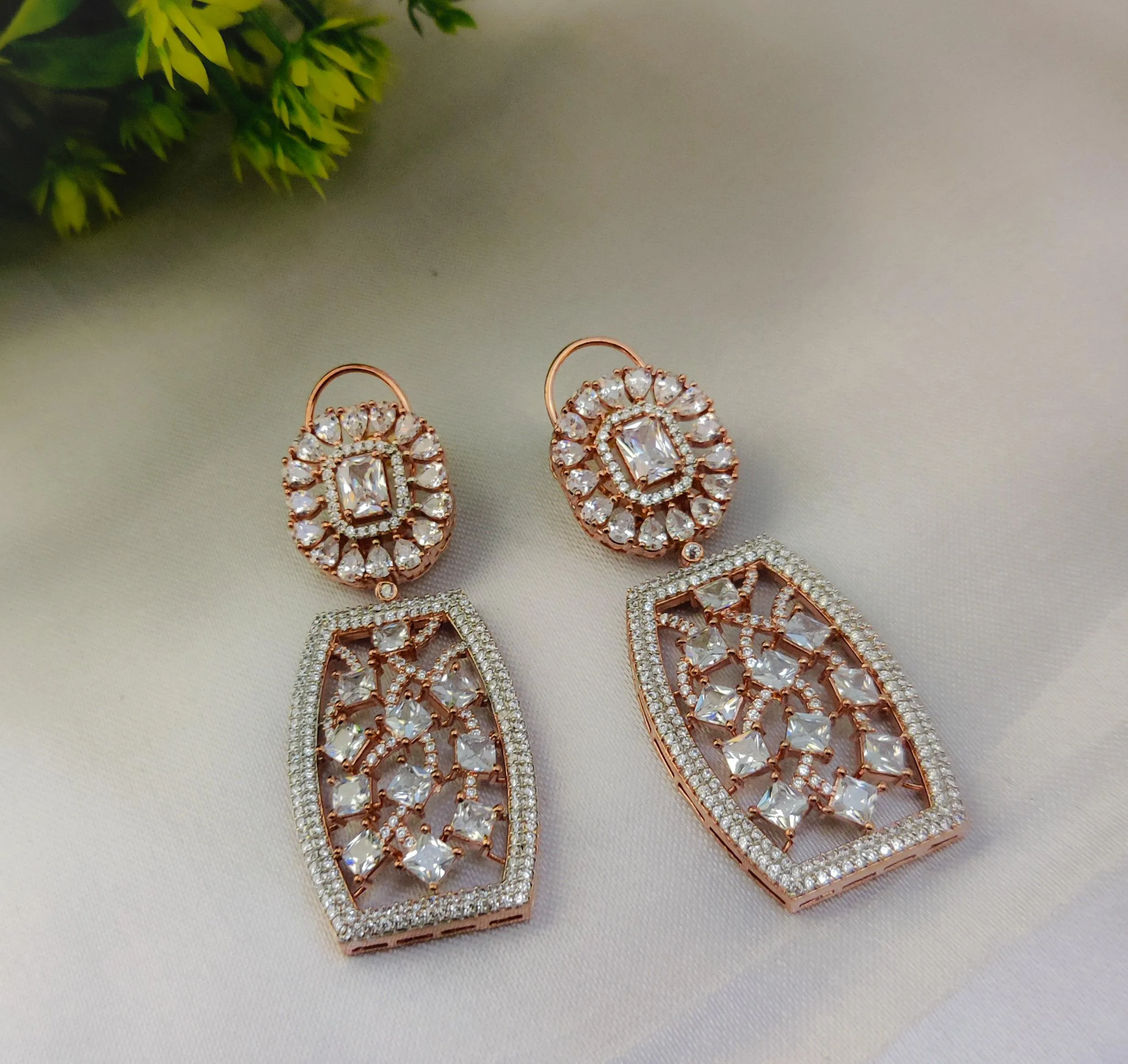 Victorian Rose Gold American Diamond Earrings for Party Wear