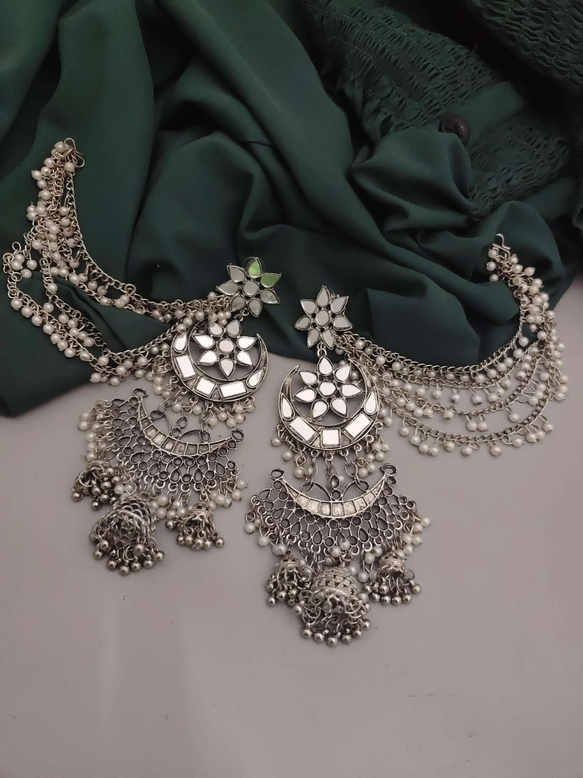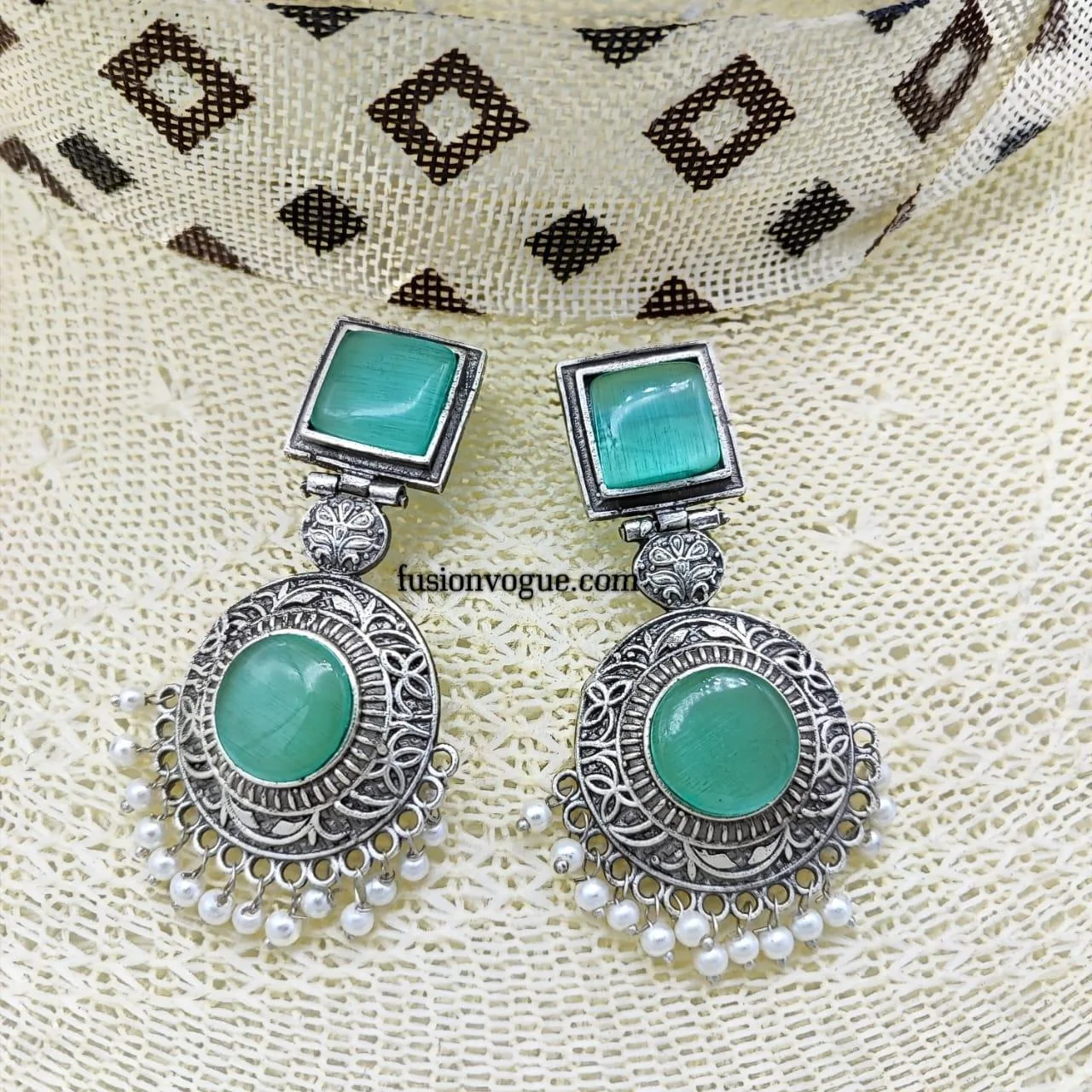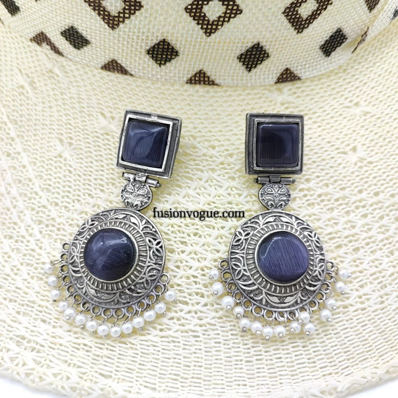 Stunning Trendy Oxidized Mirror Danglers Earrings