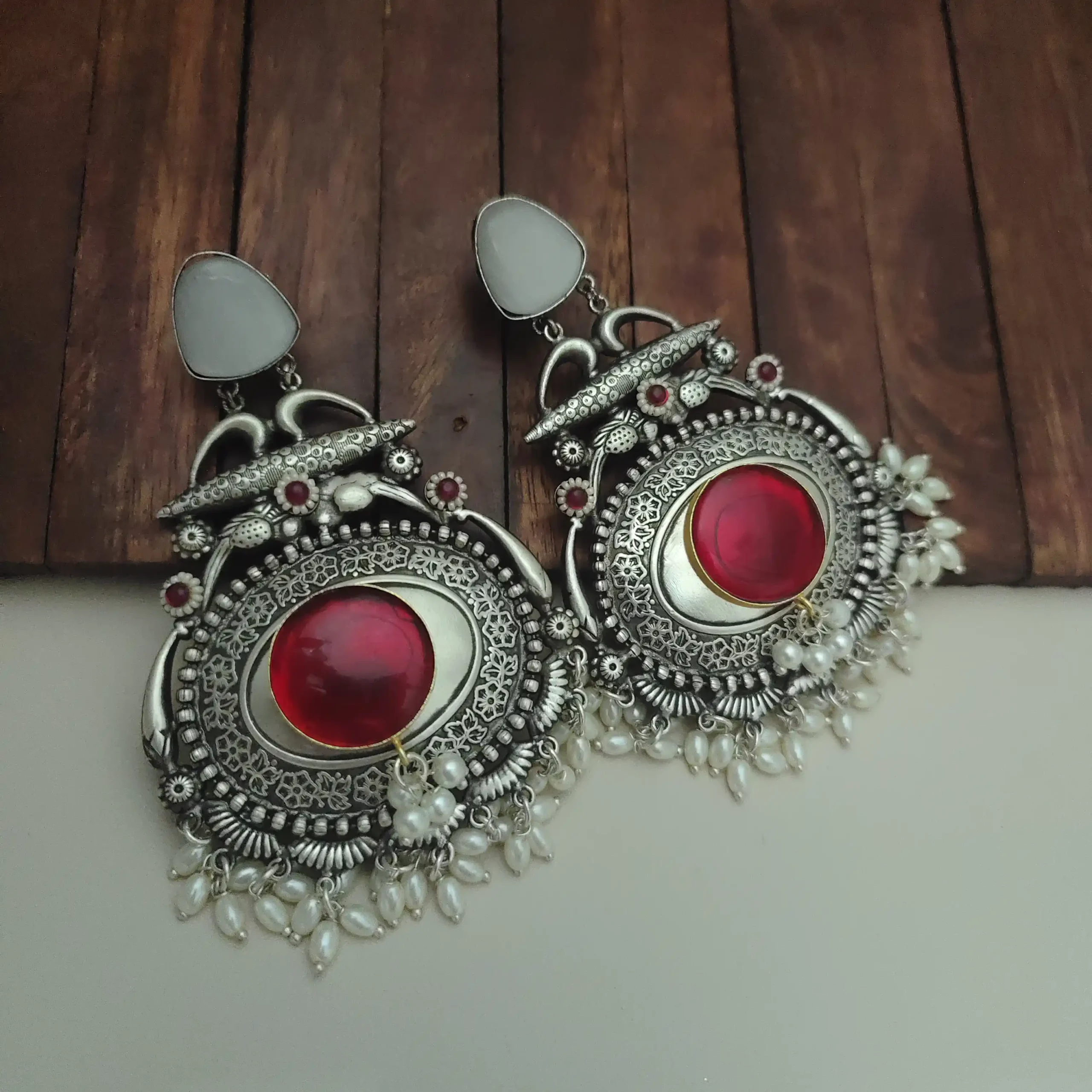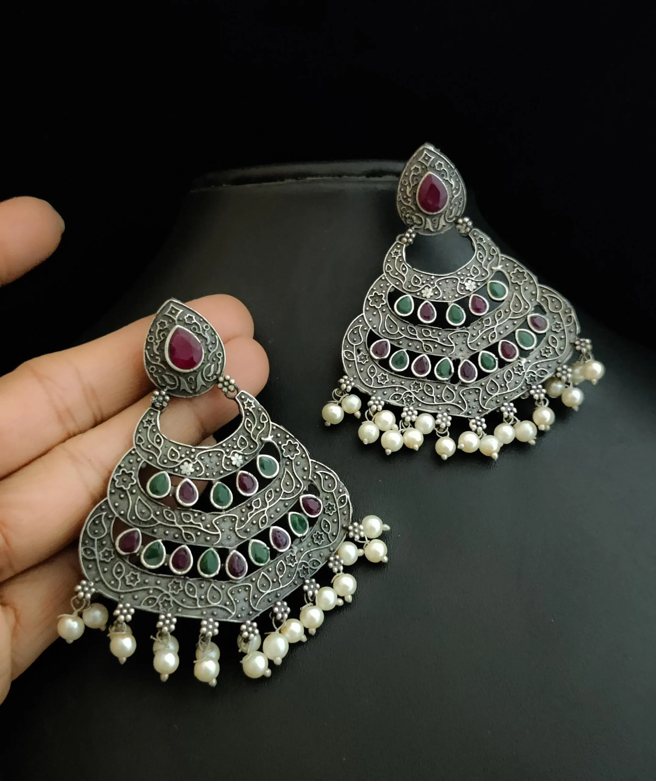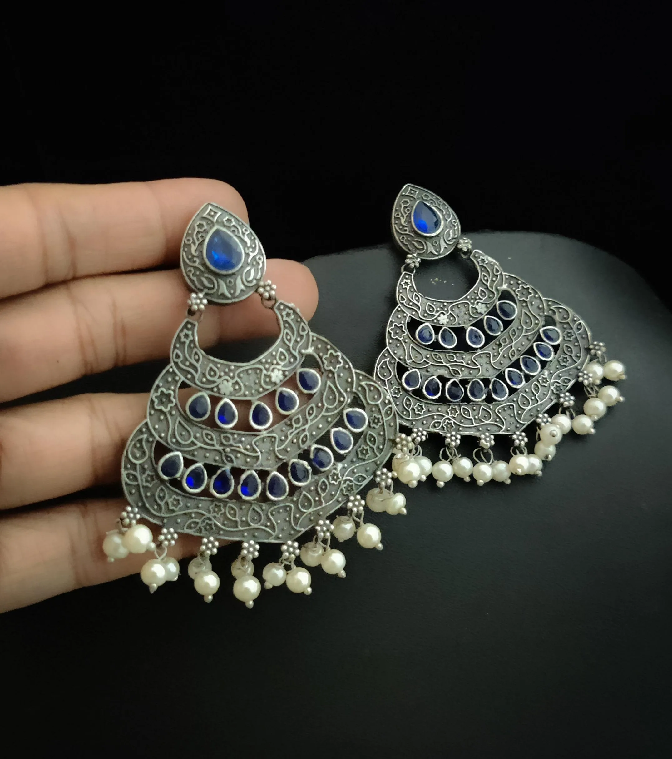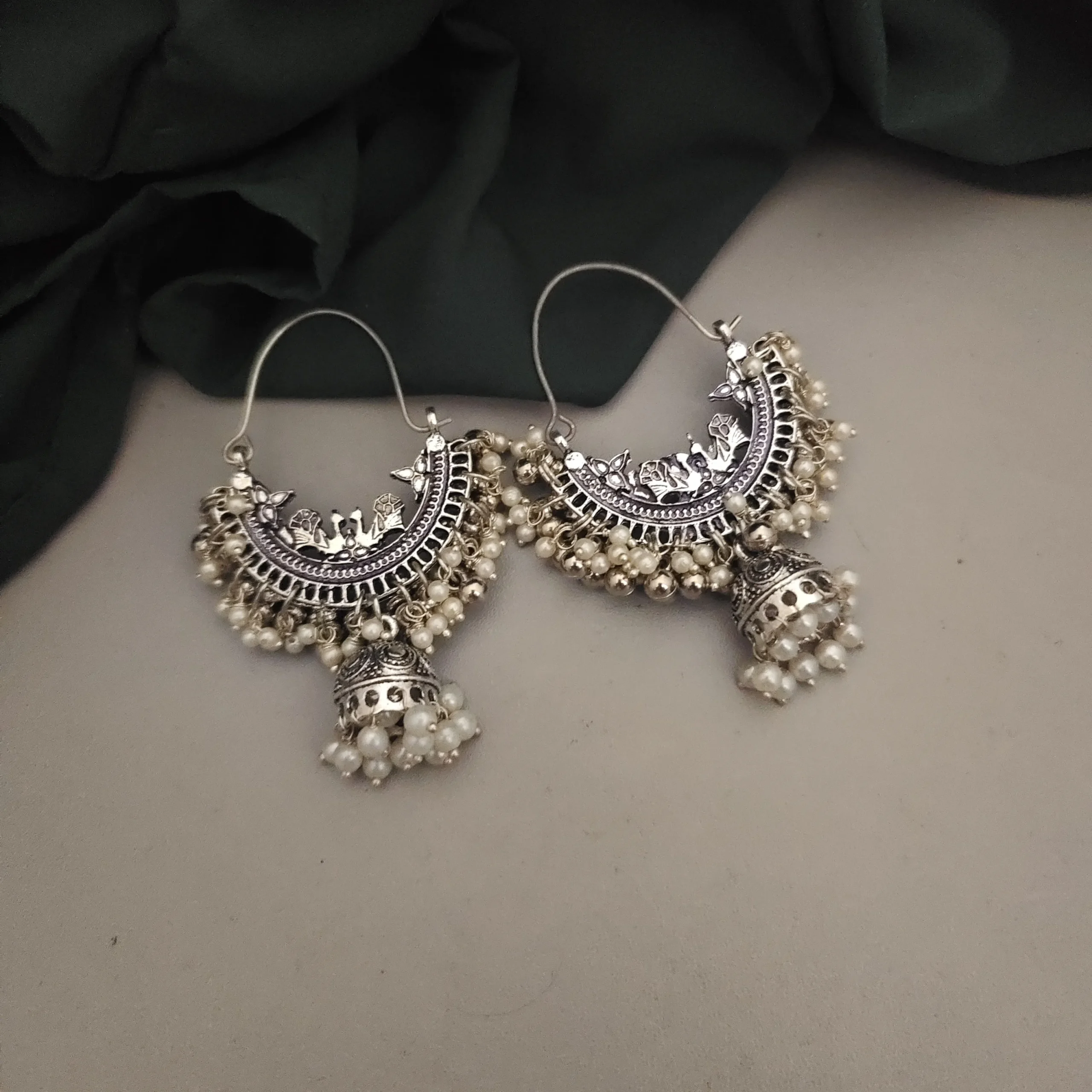 Ethnic Oxidized Chandbali Jhumka Earrings