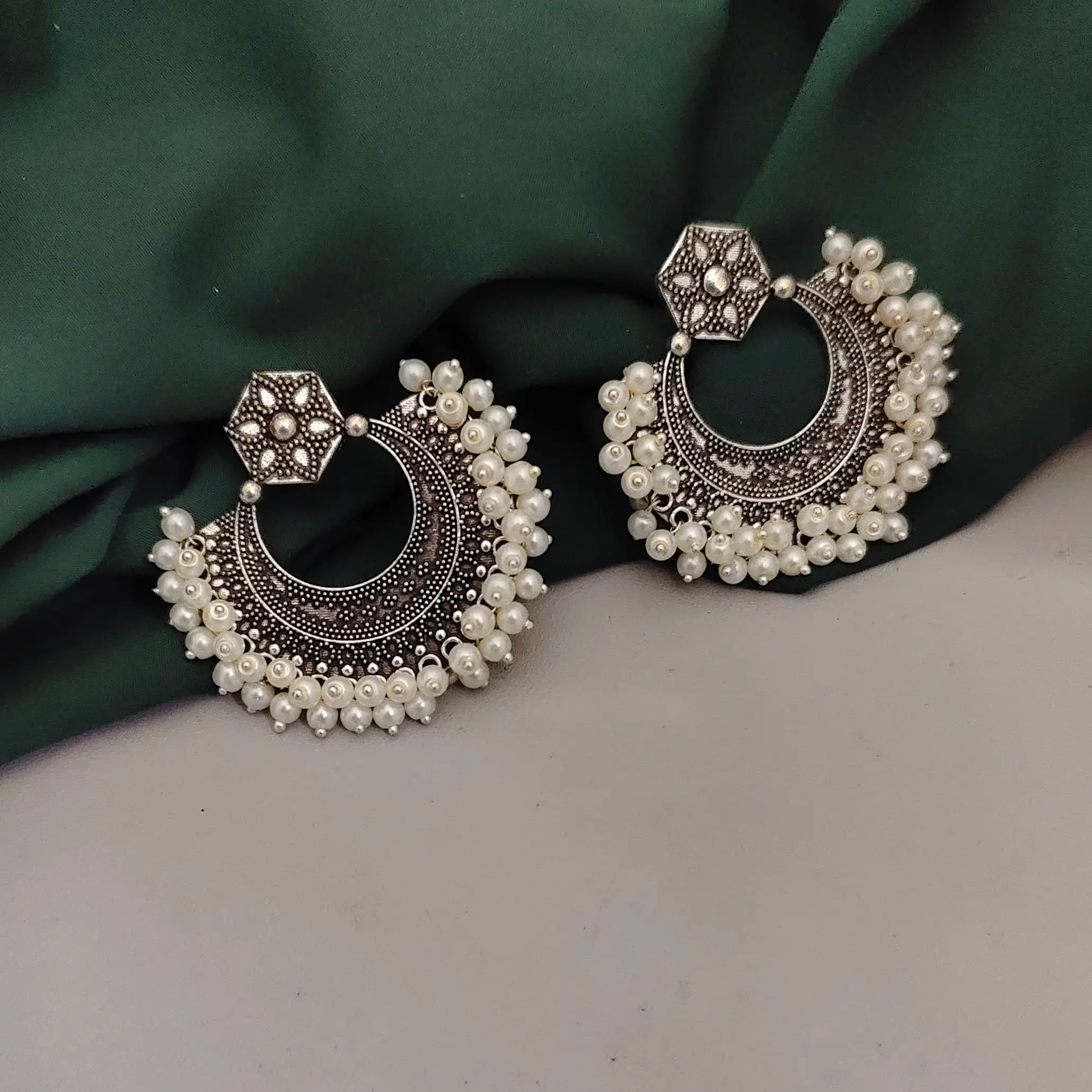Exquisite Silver Pearl Chandbali Earrings – Perfect For Weddings And Parties