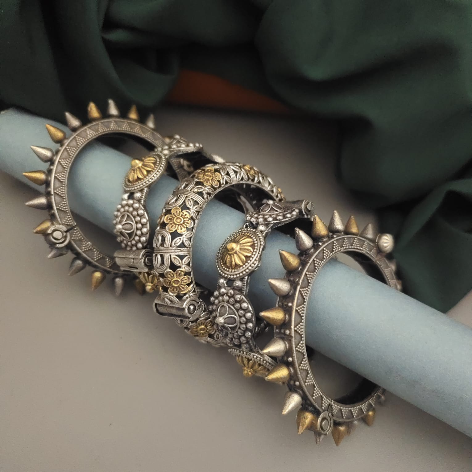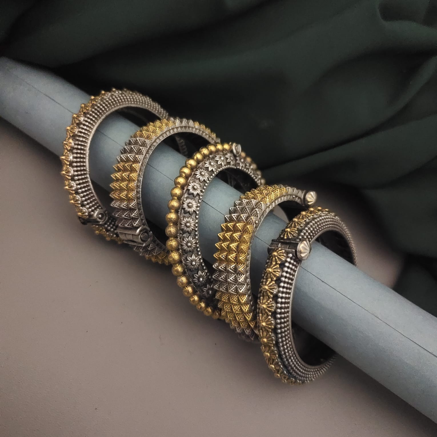 NOOR Two-Tone Silver Replica Brass Screw Openable Bangles Stack